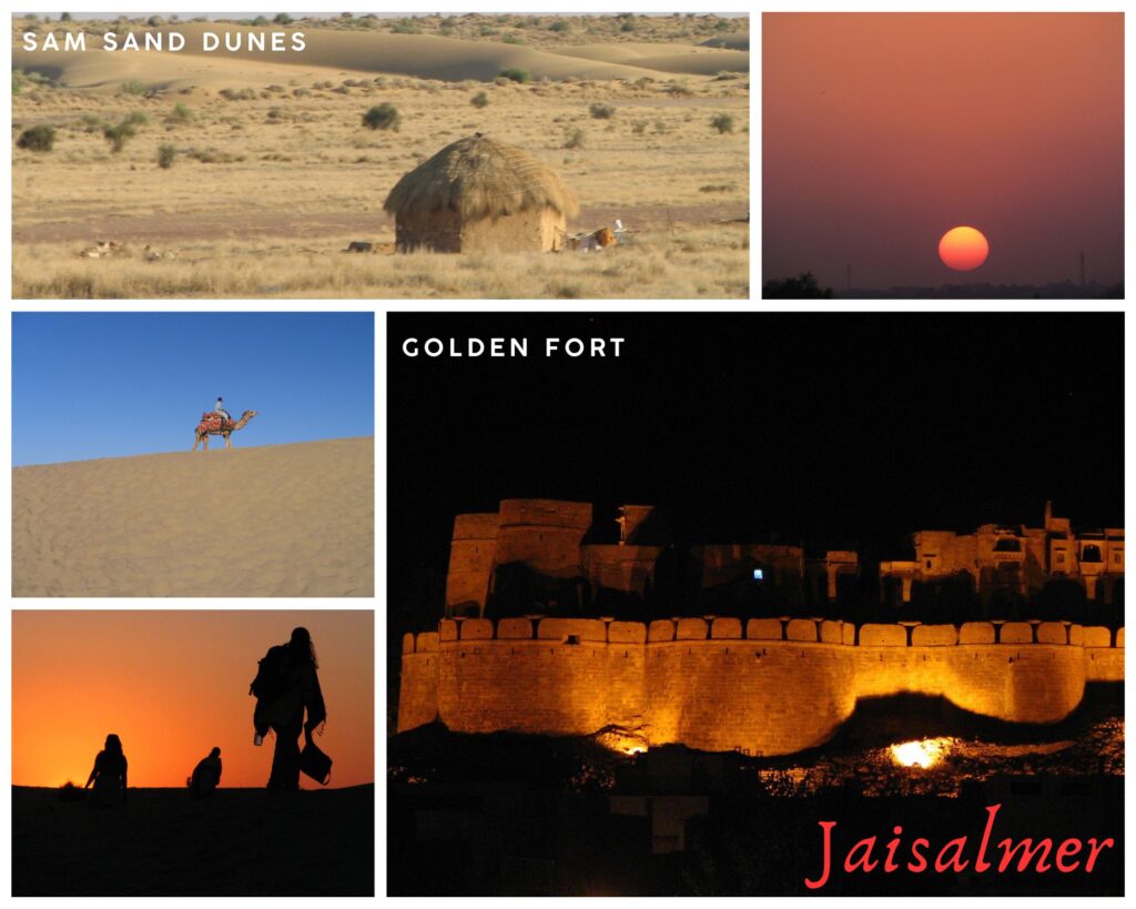 That evening, we drove into the Thar Desert to the Sam sand dunes. My mother and Dwiti shared one camel, Seejo and I another, both led by a seven-year-old boy who guided us confidently into the dunes. After clicking photos, he wished us luck with our “dansodiner” (dance and dinner ) and vanished speedily, leaving us to guess what dansodinar meant. We found a quiet spot, watched the dunes change color at sunset, and then walked to our desert camp for music, food, and bonfire. The food deserves its own paragraph: dal-baati-choorma, gatta curry, ker-sangri, kadhi-pakodi, kachoris, bajra rotis. My in-laws eyed each dish with suspicion, mourning the absence of dosa, while the rest of us ate with wholehearted enthusiasm. We slept in tents, woke early for sunrise, and discovered that the dunes existed only within a finite patch, surrounded by scrubland where deer roamed freely.