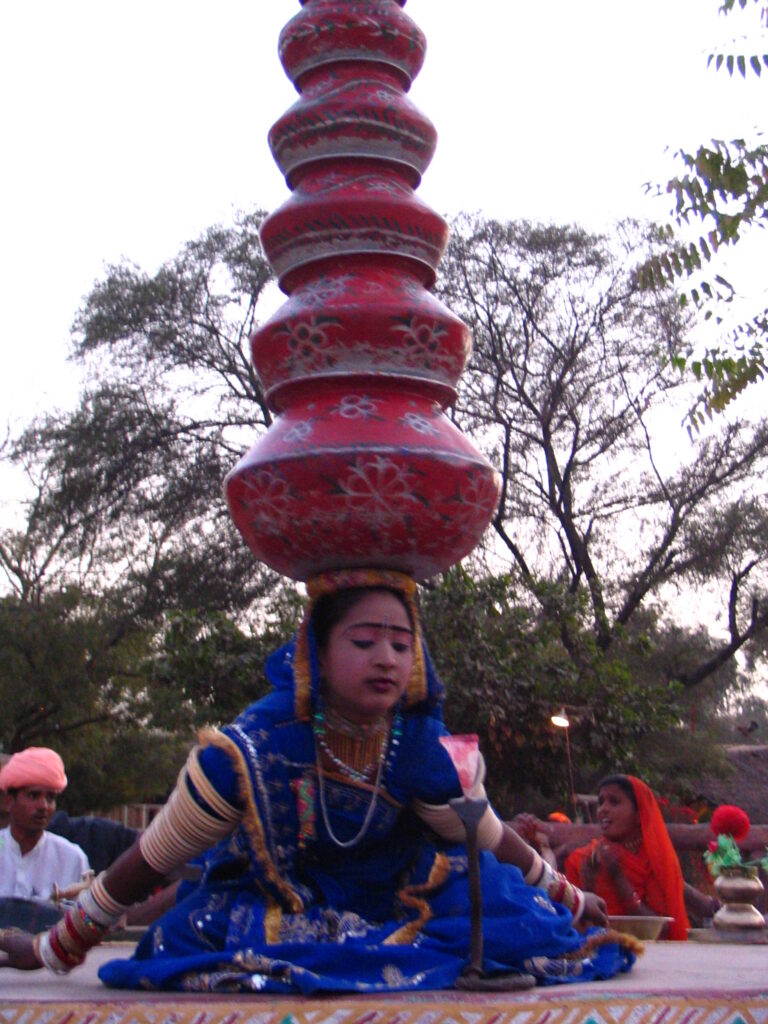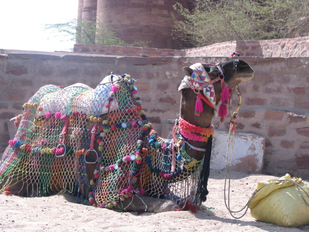 We skipped around the corner to the Singhania Haveli (owned and maintained by the Indian industrialist) and open for tourists. From there we visited Junagarh Fort in Bikaner, pleasant, but unremarkable, and stayed at Harasar Haveli. One of Rajasthan’s great pleasures is staying in these converted havelis: heritage exteriors with modern comforts, and breakfasts of parathas, poori-bhaji, cutlets, poha, alongside continental options. Every hotel was a find, from Jhalamandgarh in Jodhpur to Hotel Moonlight in Jaisalmer, directly opposite the grounds of the annual Desert Festival. By sheer luck, we arrived on the opening night. We crossed the road to hear Vasundhara Das sing, watch children on camel rides, and admire Sonargarh glowing under night lights. We also caught a glimpse of Mr. Desert 2008, who twirled his moustache for us and posed for a photo!