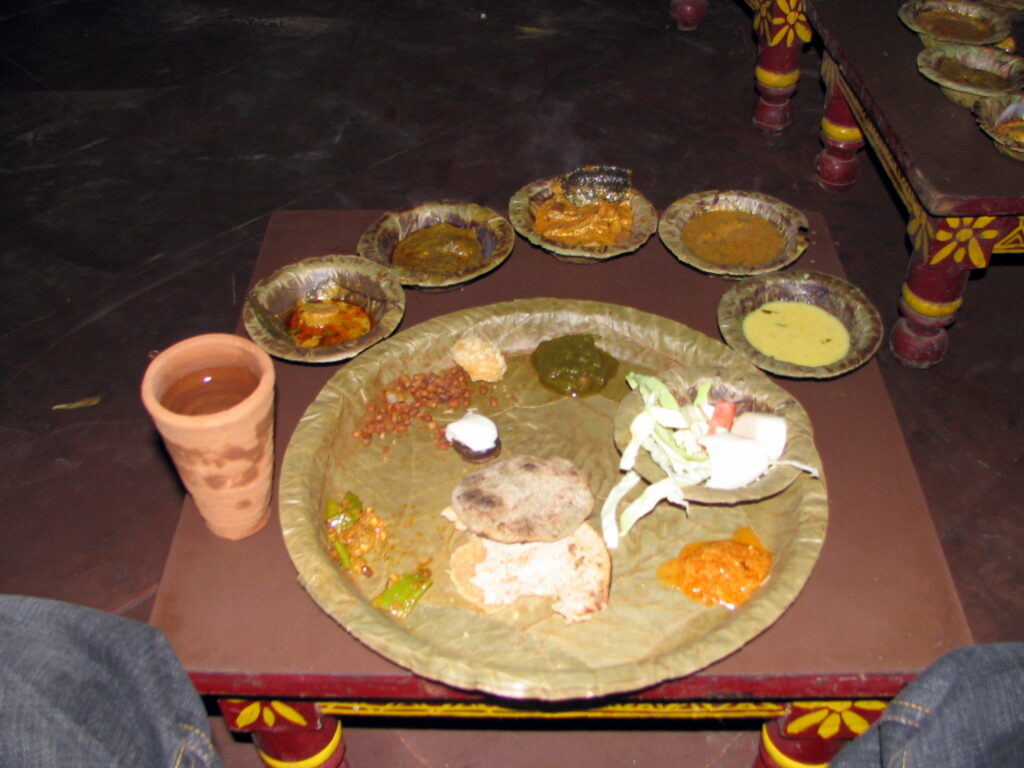 But Jaipur, in my memory, will always be Chokhi Dhani. Over-the-top, unapologetically touristy, and utterly delightful. A carefully constructed version of a Rajasthani village, complete with mehendi artists, camel rides, Ferris wheels, folk dancers, magicians, and even an astrologer whose parrot dispensed fortunes. It was cliché in every possible way, and enormous fun. Seejo, busy fiddling with his fancy cameras, was promptly mistaken for a local photographer, at least two families confidently approached him, ready to hire him for their family portraits. The food was the real star: served on leaf plates, sipped from earthenware cups, eaten cross-legged on the floor while servers urged us to “jeemon, jeemon” (eat, eat) and liberally poured ghee and sugar over moong khichdi as if cholesterol were a fictional concept. The evening ended memorably with my father-in-law attempting to wash his hands with fennel seeds (served as a post meal digestive), having misheard “saunf” (fennel) as “soap.”