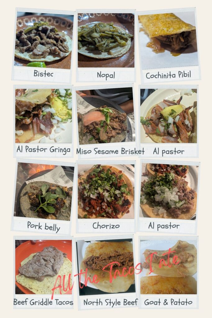 The best part of Mexico City was undoubtedly the food. Whether it was at a street vendor or a Michelin-star restaurant (CDMX has tons of both!), the food never disappointed. The sauces were bright and bursting with flavor. Each morsel was sweet and sour and spicy and tangy all at once. We went on a Tacos and Mezcal tasting tour with Sabores Mexico Food Tours, nine different tacos. Several mezcals. Al pastor shaved from a vertical spit, paying homage to Mexico’s melting pot heritage, since it was clearly borrowed from Lebanese immigrants. Mexico made it their own by switching the lamb to pork and then adding a slice of pineapple. The late-night favorite of the working class, the suadero, slow-cooked and crisped with a variety of salsas. And the only street taco stand that has earned a Michelin star, El Califa de León, where we had the thinly sliced fillet of beef taco with nothing but a squeeze of lemon on top. My favorite taco was not part of the tour, but it was recommended by the tour guide. A citrusy, slow-cooked shredded pork, the cochinita pibil, left me wanting one more immediately. And my favorite drink, the hibiscus mezcalita, smoky, floral, tangy, and sweet. We balanced the street food by having dinners in a couple of upscale eateries, some Michelin-starred ones and some that could very well be. We ate red ants, ant eggs, and grasshoppers. We drank mezcals and cantaritos and pulque and tequila cocktails. We ate the best mole I have ever eaten in my life and one of the best aguachiles too.