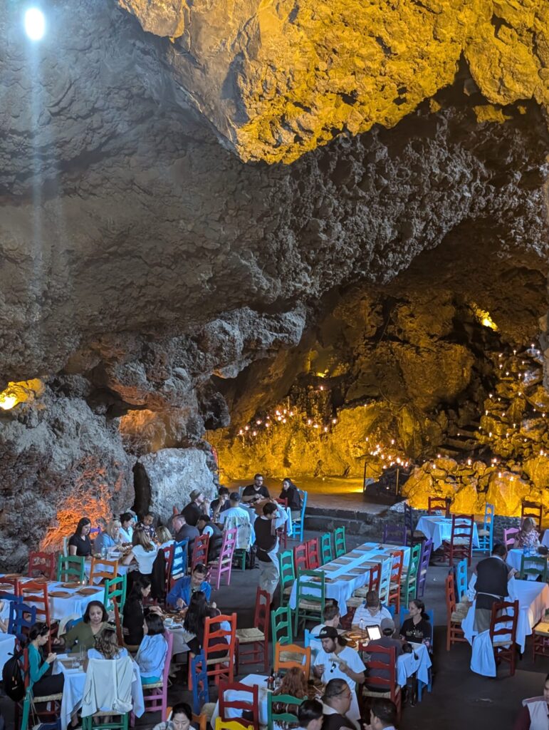 We stopped at La Gruta, the famous cave restaurant near the site. The food and service were honestly subpar, but the ambience was undeniable, candlelit tables tucked into dramatic cavern walls. The drinks were solid, and yes, we tried the grasshopper tacos (still preferred the ones at Oyamel). On the drive over, Alejandro had mentioned that locals sometimes complain that restaurants tone down the spice to suit tourists. At La Gruta, that felt very true. Our final stop was the Basilica of Guadalupe. Legend says the site was once dedicated to an Aztec deity before being transformed after reported visions of the Virgin Mary asking for a church to be built in her honor.