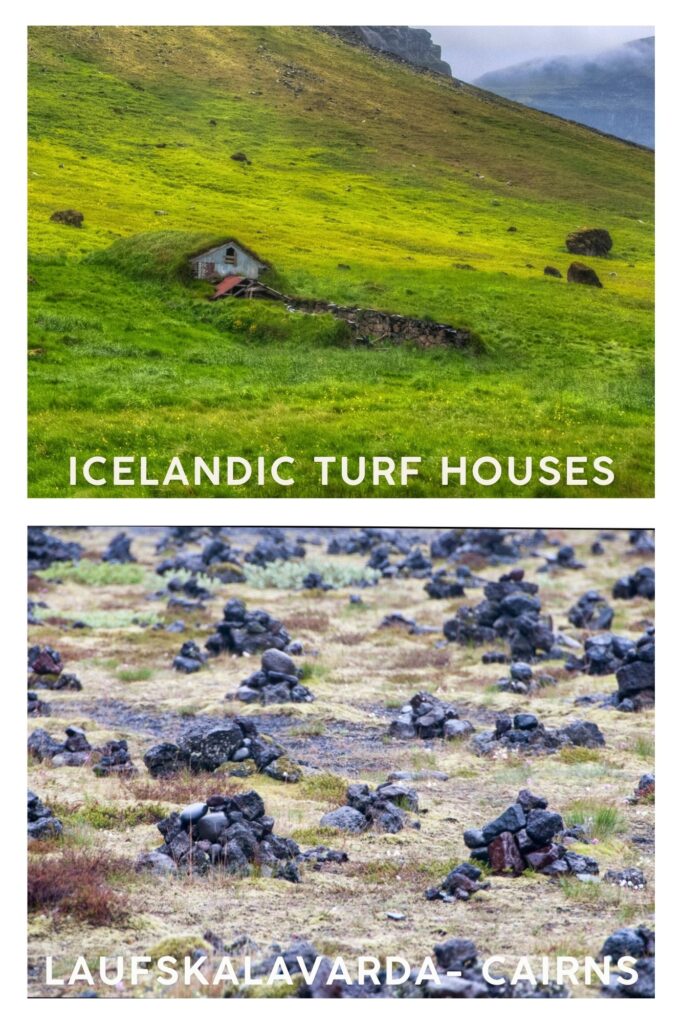 The return drive along Route 1, the highway that circles Iceland, was spectacular. Black volcanic soil and massive glaciers gradually gave way to a rocky landscape filled with stacked stones. At first we thought these were natural formations, but we soon learned they were cairns built by travelers, each person adding a stone for good luck. Soon the rocky terrain gave way to green valleys, horse farms, and the occasional Icelandic turf house, built partially into the earth with grass-covered roofs that blend into the landscape. Waterfalls appeared every few miles. We stopped frequently to photograph the falls, sheep-filled meadows, and the sweeping landscape around us.