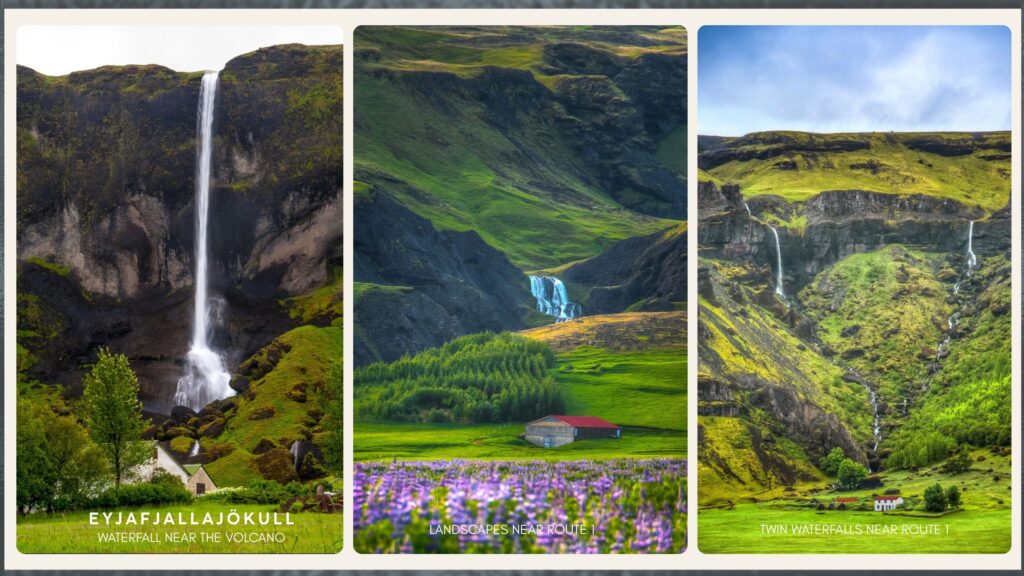 Later we visited Skógafoss and Seljalandsfoss, two of Iceland’s most beautiful waterfalls. At Skógafoss, the water cascaded into a rumbling stream across a lush green meadow where cows and sheep grazed peacefully. Our daughter was completely transfixed and wanted to cross the stream to meet the cows. Along the way we passed Eyjafjallajökull, the volcano that famously disrupted European air travel in 2010.