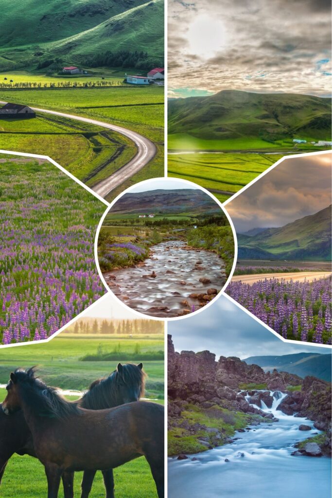 Within minutes of leaving Keflavík, we were already marveling at Iceland’s surreal landscape, which seemed miles away from civilization. Along the entire drive to Thingvellir, there were no houses and no discernible signs of a town or settlement. Fields of purple lupines stretched toward green mountains in the distance. Waterfalls were abundant. Majestic Icelandic horse dotted the landscape, and sheep grazed peacefully in the pastures. Later someone told us the horses do not actually outnumber humans in Iceland, but I am still not entirely convinced.